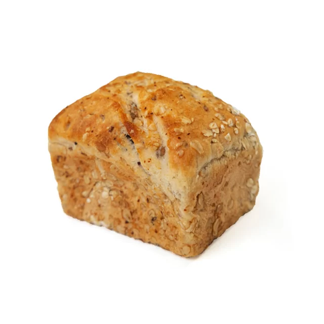 Bread – a bakery product shaped into a square form of smaller dimensions and weight, resembling a mini loaf. It is made from a mix of white wheat flour and whole wheat flour, enriched with aromatic natural durum sourdough, sunflower, pumpkin, and flax seeds, as well as sunflower oil.